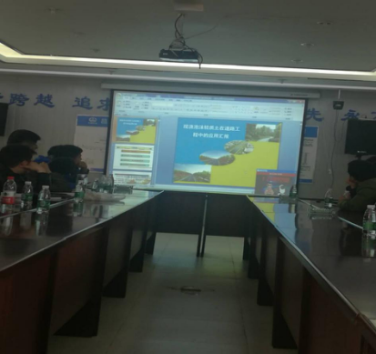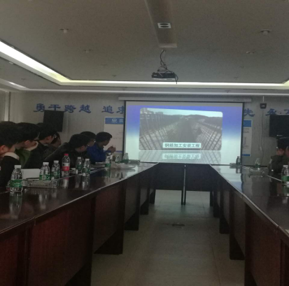 現(xiàn)場聽取介紹昌九快速路工程概況以及目前的施工技術(shù)特點(diǎn)、難點(diǎn)及進(jìn)展情況;現(xiàn)場觀看了從泡沫混泥土施工工藝、大型橋梁的梁片、張拉、運(yùn)輸、架梁等方面的效果視頻及深入細(xì)致的講解,工程的體量和技術(shù)難度讓人震撼。大家在認(rèn)真觀看視頻后,不時(shí)地提出問題請教,項(xiàng)目總監(jiān)都一一進(jìn)行了解答。